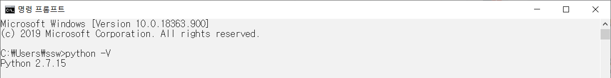 프리다는 파이썬으로 만들어졌기 때문에 먼저 파이썬이 설치되어야 합니다. 현재 제 노트북에 설치된 파이썬 버전은 2.7.15 버전이네요.
