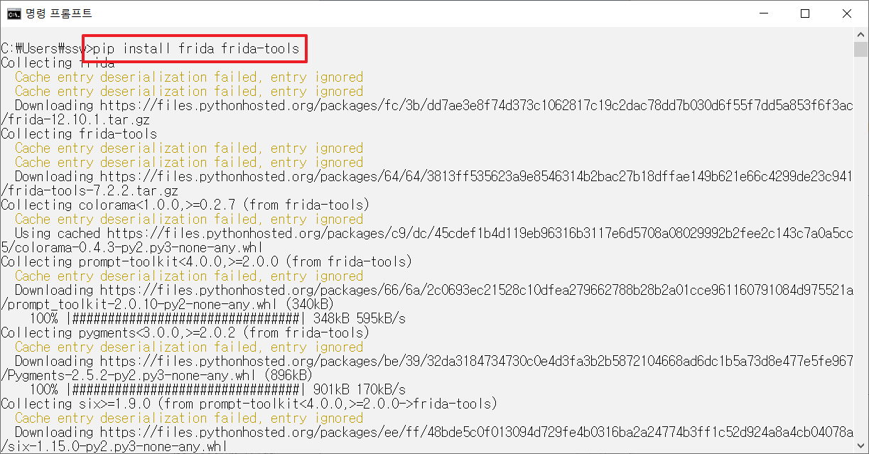 Step 1. pip install frida frida-tools 명령어로 설치합니다.