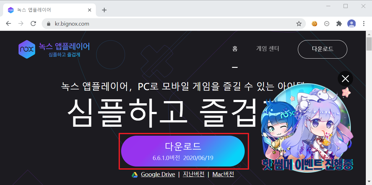 애플리케이션은 Nox라는 가상머신으로 실행할 것이기 때문에 Nox를 먼저 설치하겠습니다.