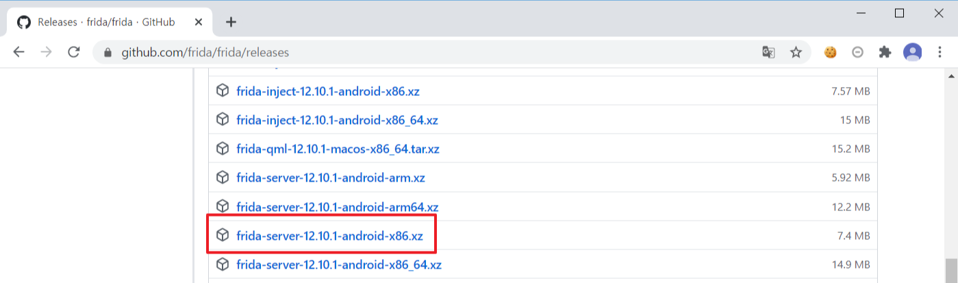 x86 이네요. 이제 아래 링크에서 아키텍처에 맞는 프리다 서버를 설치해야 합니다.