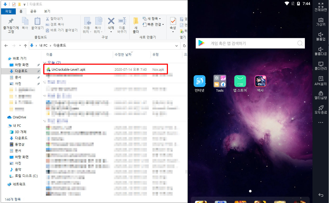 두 가지 방법이 있는데 하나는 Uncrackable 앱을 더블 클릭해서 설치하거나, 드래그 하는 방법입니다.