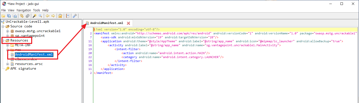<activity android:label="@string/app_name" android:name="sg.vantagepoint.uncrackable1.MainActivity">