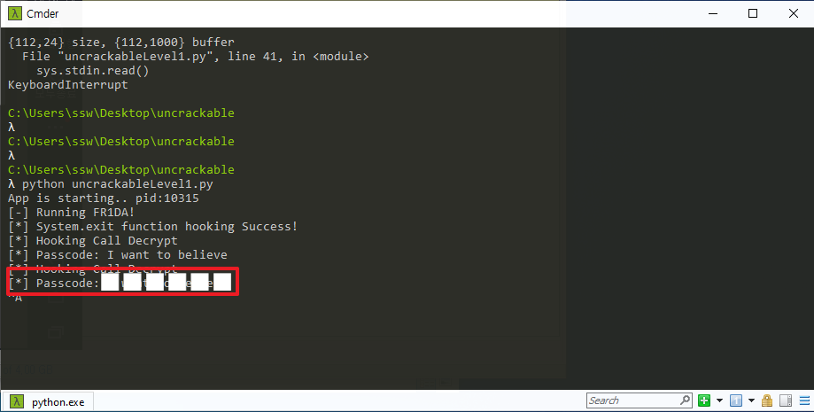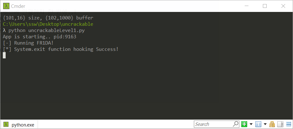 참고로 System.exit function hooking Success! 라는 부분은 알림창의 OK 버튼을 누른 후