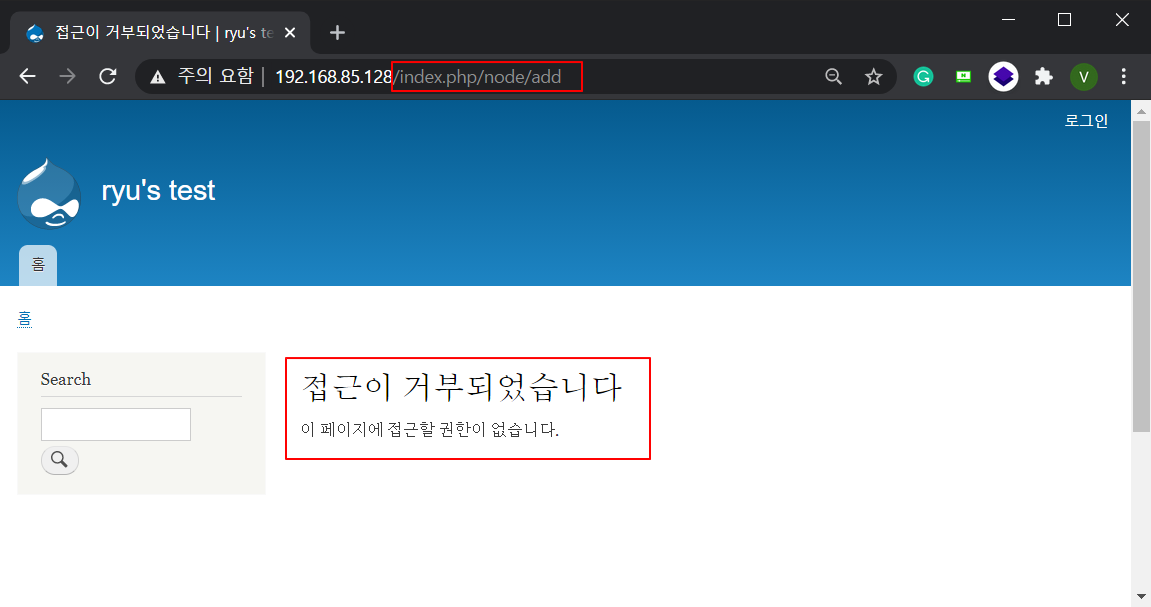 Step10. 글 쓰기 URL로 직접 접근해보니 정상적으로 접근을 차단하는 것을 확인 할 수 있습니다.